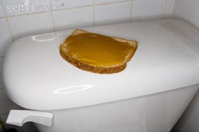 Disclaimer: This is not my photo. I have found a lot of odd things in the bathroom, but I promise that I do not keep peanut butter sandwiches in there.